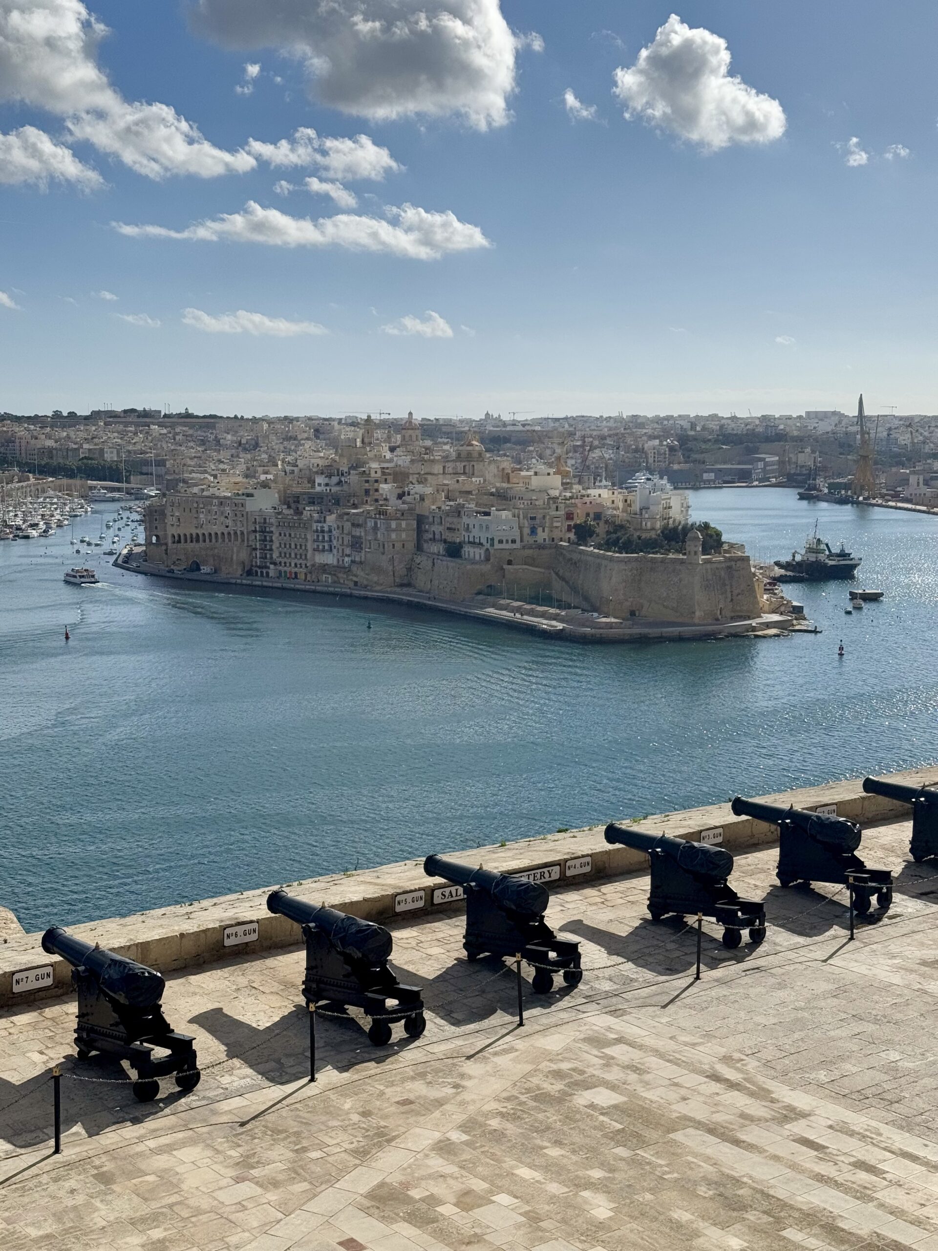 To zielone tarasy widokowe, które oferują jedne z najpiękniejszych panoram na Grand Harbour i tzw. Trzy Miasta – Birgu, Sengleę i Cospicuę. Warto tu przyjść rano lub o zachodzie słońca – gra świateł i cieni na kamiennych budowlach portowych robi ogromne wrażenie.