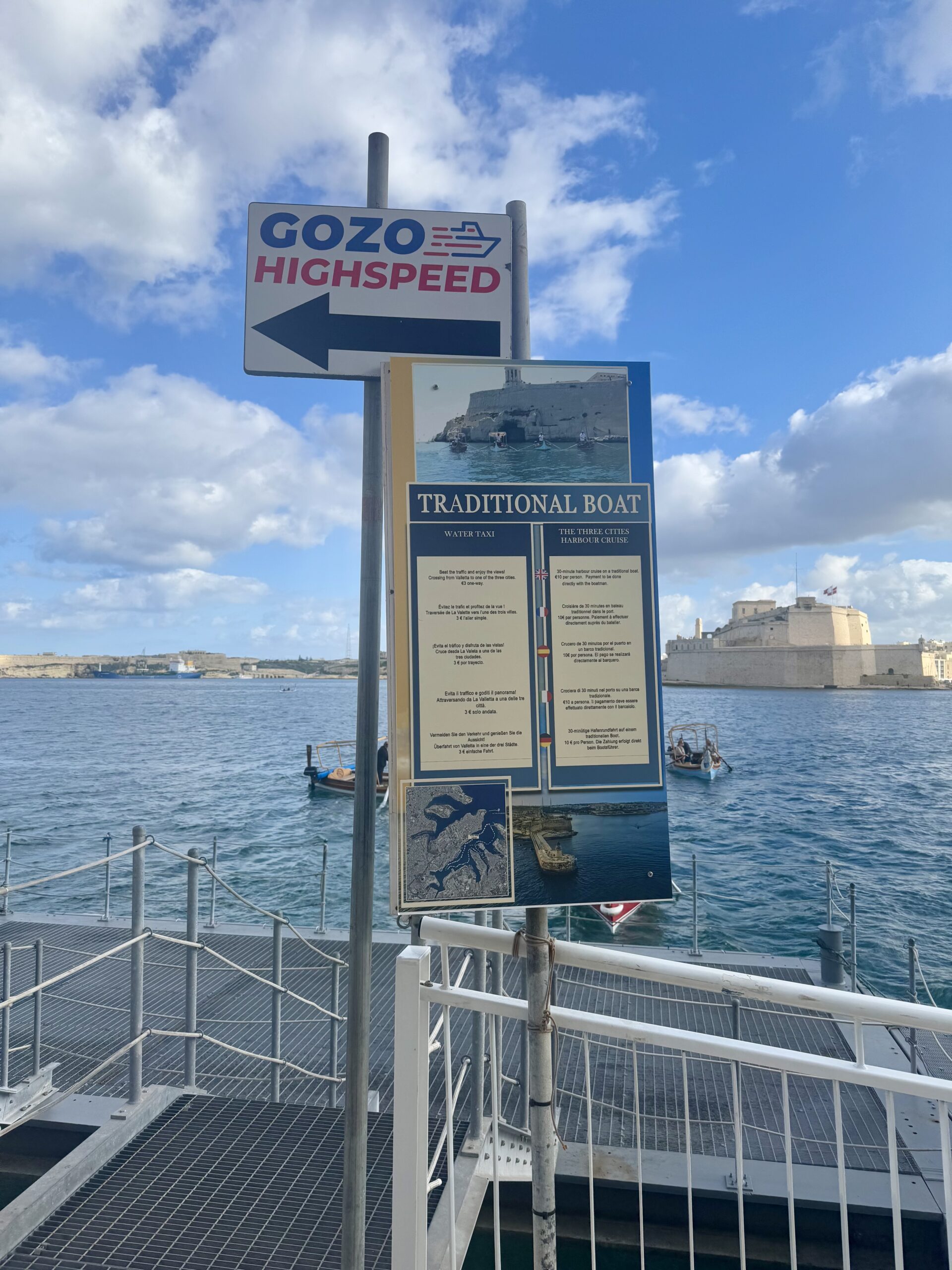 Jak znaleźć przystanek, z którego odpływają gondole? Wystarczy wpisać w google: Gondola Trips (tu pinezka). Przystanek znajduje się tuż pod Górnymi Ogrodami Barrakka. Gondola płynie na drugą stronę do Trzech Miast. Cały rejs trwa ok. 10 minut.